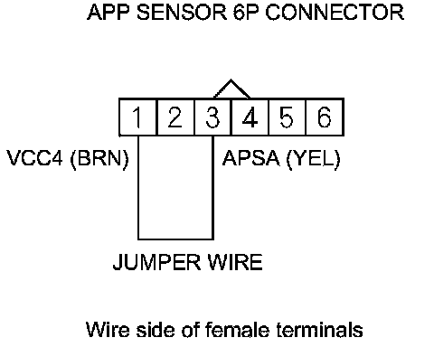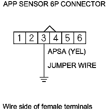 11. Connect APP sensor 6P connector terminal No. 3 to body ground with a jumper wire.