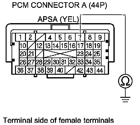 12. Check for continuity between PCM connector terminal A17 and body ground.
