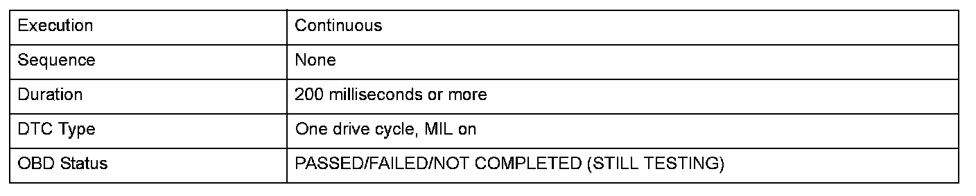 Monitor Execution, Sequence, Duration, DTC Type, OBD Status