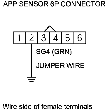 10. Connect APP sensor 6P connector terminal No. 2 to body ground with a jumper wire.