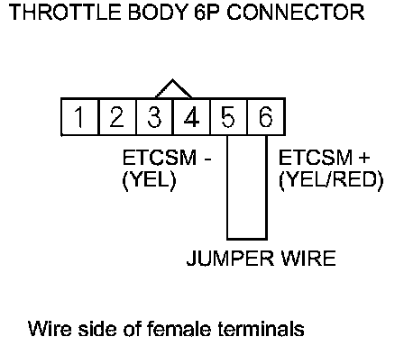 16. Connect throttle body 6P connector terminals No. 5 and No. 6 with a jumper wire.