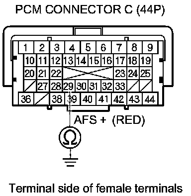 9. Check for continuity between PCM connector terminal C29 and body ground.