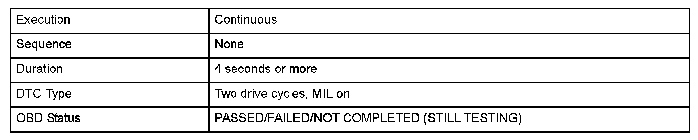 Monitor Execution, Sequence, Duration, DTC Type, OBD Status