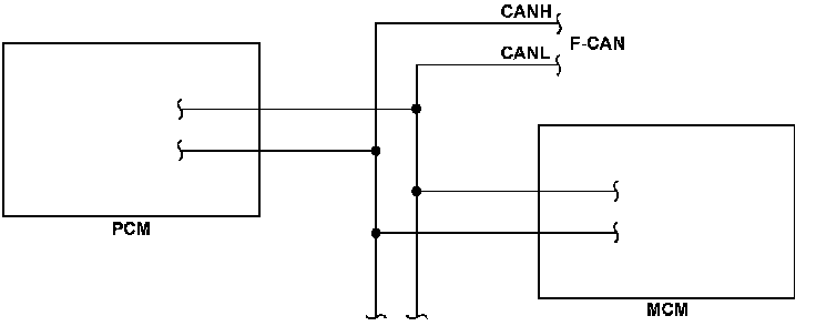 The controller area network (CAN) transmits/receives pulsing signals to/from the control modules simultaneously by using two signal lines (CANH and CANL). When the information is not sent from the motor control module (MCM) via the F-CAN and this condition continues for a specified time or when the information sent from the MCM is abnormal and this condition continues for a specified cycle, the powertrain control module (PCM) detects a malfunction and stores a DTC.