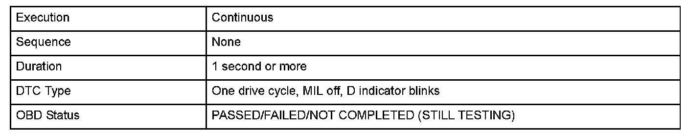 Monitor Execution, Sequence, Duration, DTC Type, OBD Status