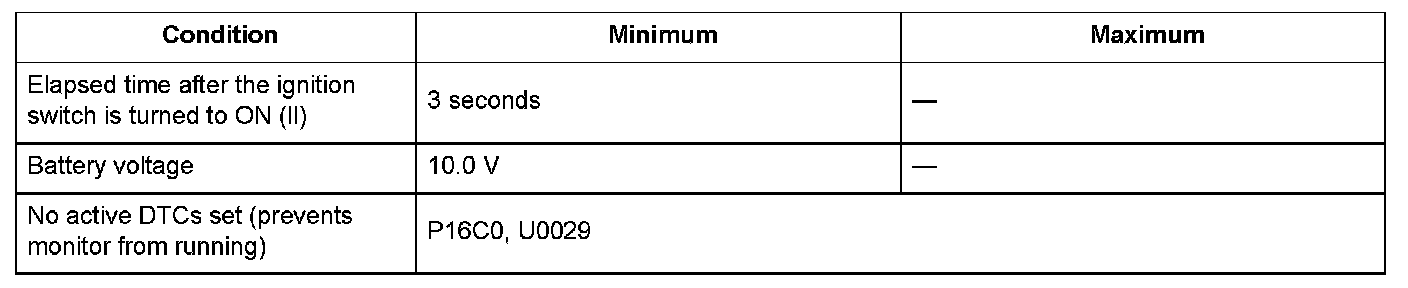 Conditions for setting the DTC