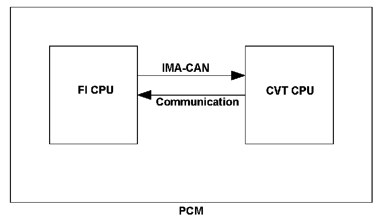 The integrated motor assist-controller area network (IMA-CAN) uses two signal lines, IMACANH and IMACANL, and it receives and transmits multiple signals simultaneously to/from multiple control modules. When the software version in the FI CPU and the CVT CPU are mismatched for a set time, the powertrain control module (PCM) detects a malfunction and stores a DTC.
