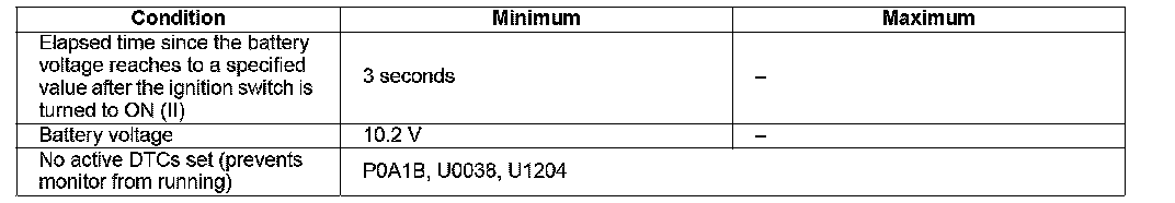 Conditions for setting the DTC