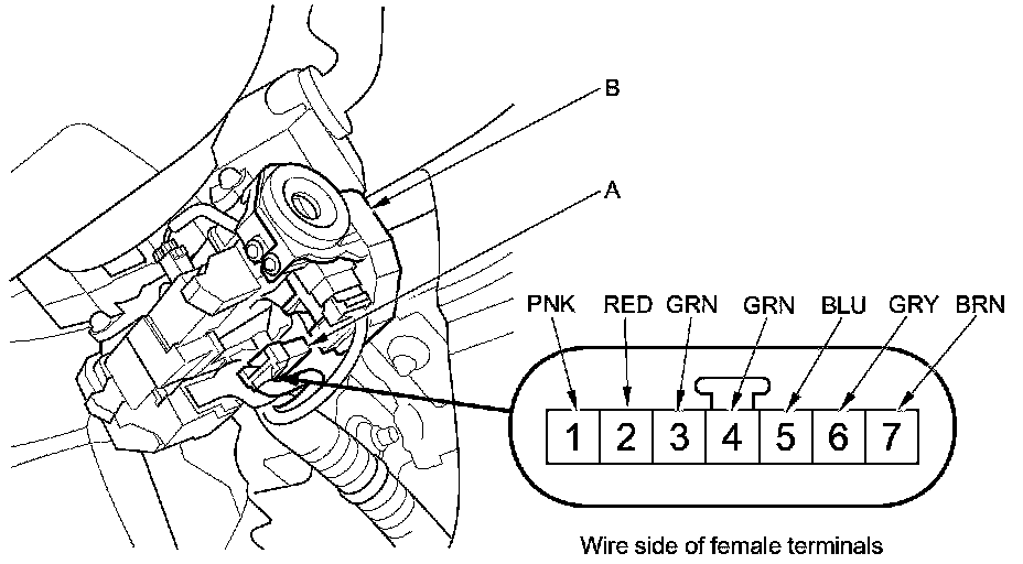 2. Disconnect the 7P connector (A) from the immobilizer-keyless control unit (B).