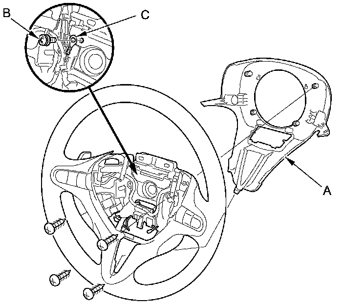 4. Remove the paddle shifter + (upshift switch) and paddle shifter - (downshift switch) Paddle Shifter + (Upshift Switch) Or Paddle Shifter - (Downshift Switch) Replacement.