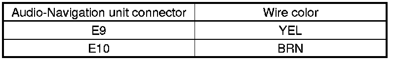 23. Check for continuity between body ground and audio-navigation unit connector E (14P) according to the table.