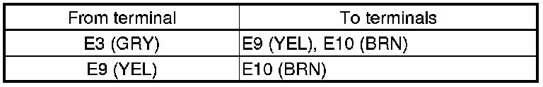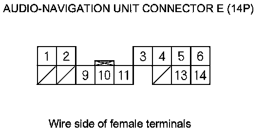 24. Check for continuity between the terminals of audio-navigation unit connector E (14P) according to the table.