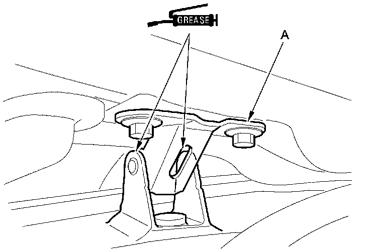8. Apply multipurpose grease to the pivot area of the hatch hinges (A) as indicated by the arrows.