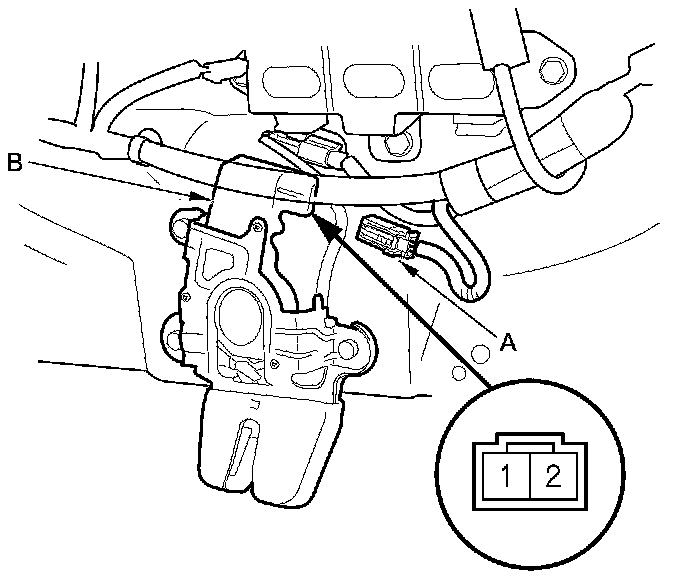 3. Disconnect the 2P connector (A) from the hatch latch (B).