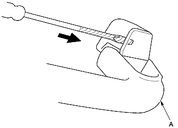 1. Lower the grab handle (A), then insert a small flat-tip screwdriver wrapped in protective tape into the notch.