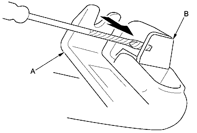 2. Pull on the small flat-tip screwdriver with the appropriate trim tool (A), and remove the cap (B).