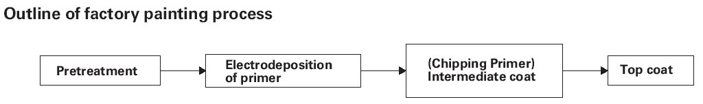 In the pretreatment process, the entire body is degreased, cleaned, and coated with zinc phosphate by dipping.