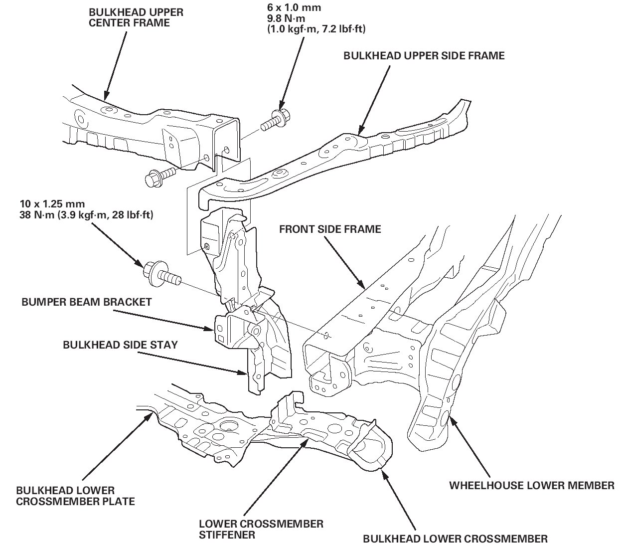 - Remove the bulkhead upper center frame and replace the bulkhead upper side frame, the bulkhead side stay, and the bulkhead lower crossmember.