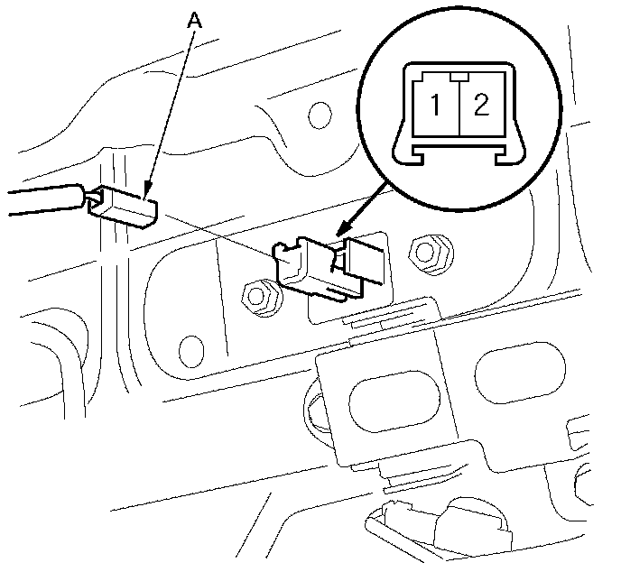 2. Disconnect the 2P connector (A) from the hatch outer handle switch.