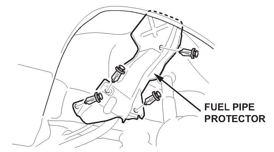 1. Remove the clips, then remove the fuel pipe protector.