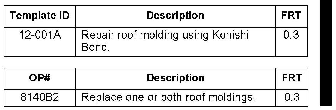Use the Template ID only if the roof molding was repaired with Konishi Bond.*
