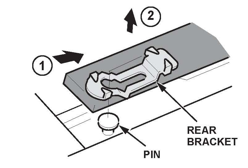 5. At the rear of the molding, pull up and release the rear bracket from the pin.