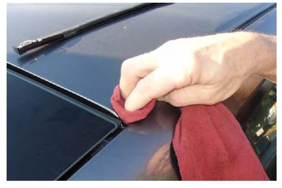 7. Clean the front and rear pins on the body, and the front and rear portion of the roof molding using a shop towel dampened in water.