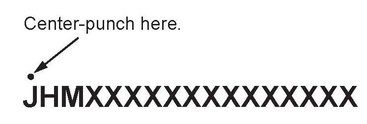 11. Center-punch a completion mark above the first character of the engine compartment VIN.