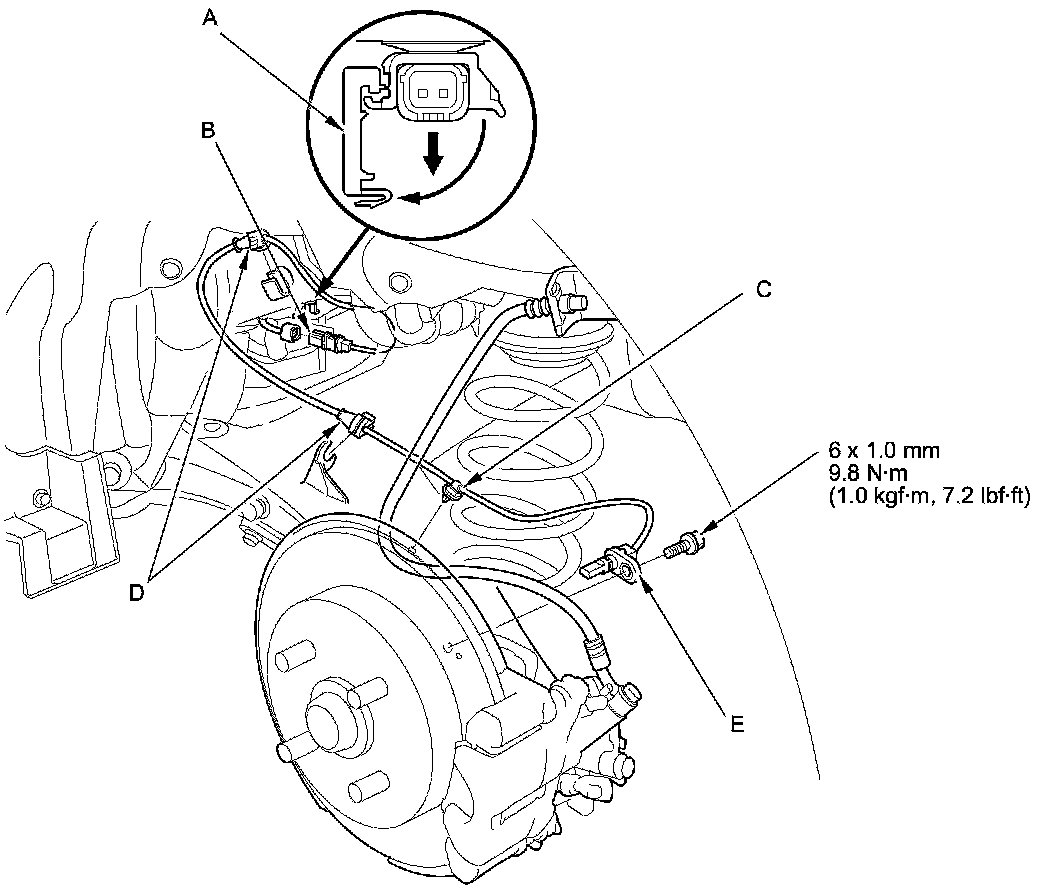6. Install the wheel speed sensor in the reverse order of removal, and note these items:
