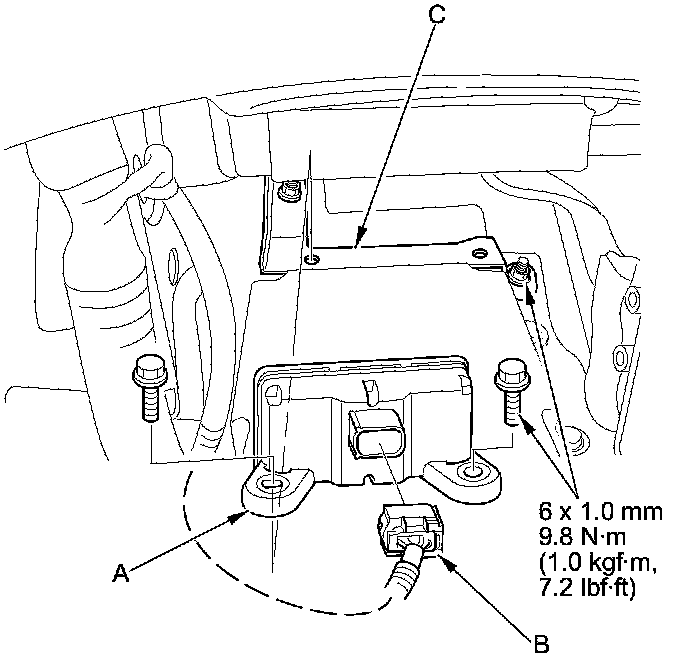 6. Install the yaw rate-lateral acceleration sensor in the reverse order of removal.