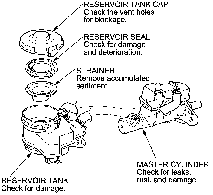 - Do not try to disassemble the master cylinder assembly. Replace the master cylinder assembly with a new part, if necessary.
