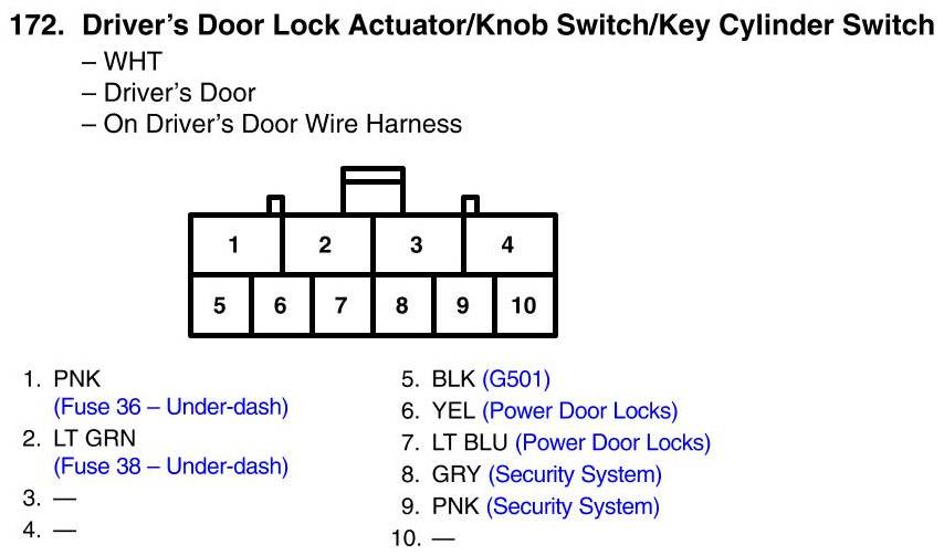 View 172 - Driver's Door Lock Actuator/Knob Switch/Key Cylinder Switch Connector View