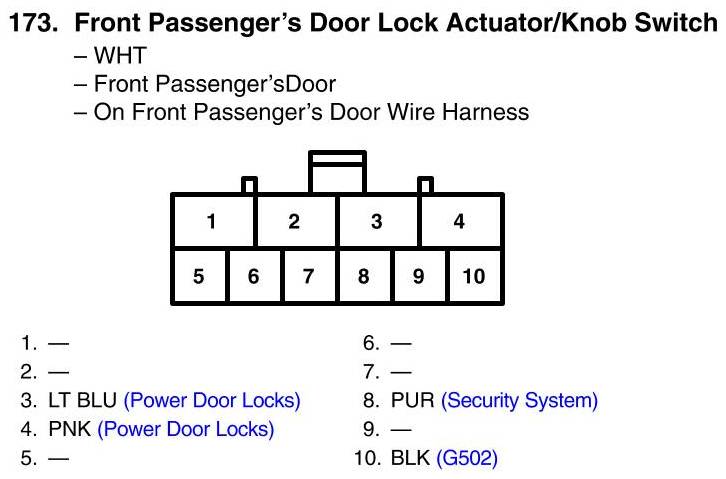 View 173 - Front Passenger's Door Lock Actuator/Knob Switch Connector View