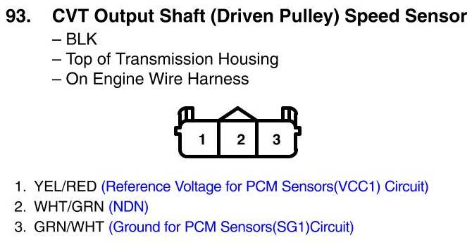 View 93 - CVT Output Shaft (Driven Pulley) Speed Sensor Connector View