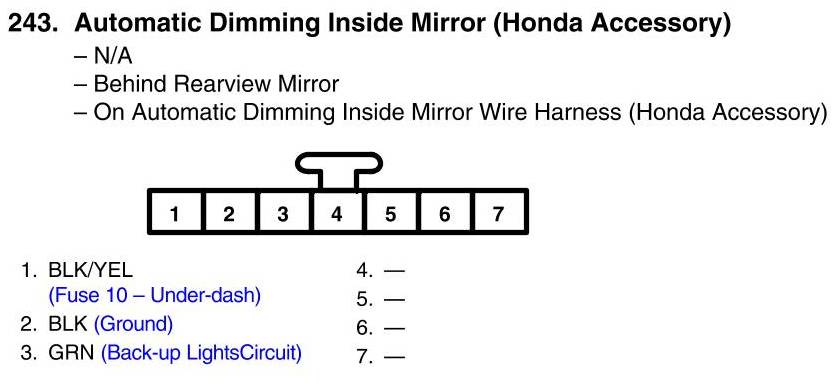 Automatic Dimming Inside Mirror Connector View (Honda Accessory)