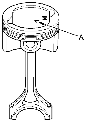 3. Position the piston/connecting rod assembly with the arrow (A) facing the cam chain side of the engine block.