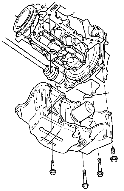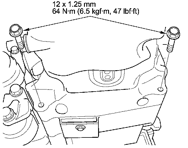 1. Remove all of the old liquid gasket from the oil pan mating surfaces, the bolts, and the bolt holes.