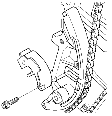 8. Rotate the cam chain tensioner slider clockwise to compress the cam chain tensioner, and install the remaining bolt, then tighten the bolts to the specified torque.