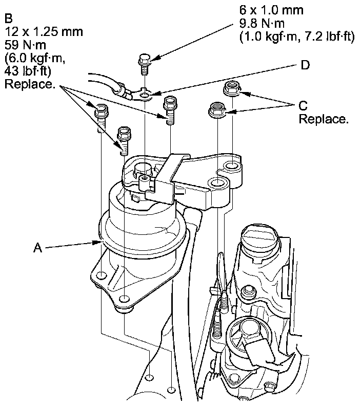 18. Loosely install the new side engine mount/bracket assembly mounting nuts (C).