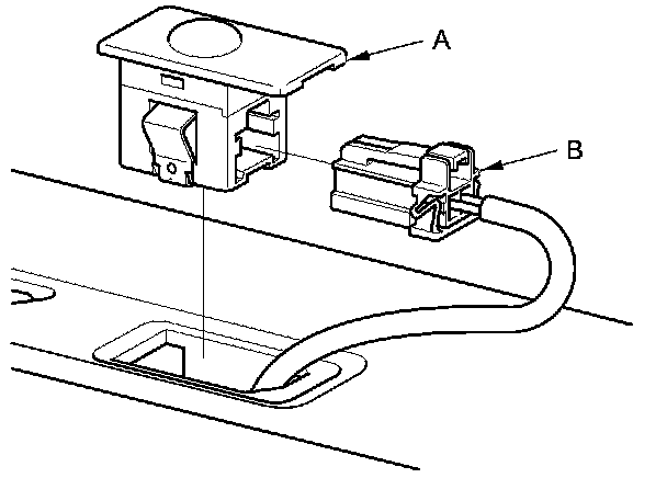 1. Remove the sunlight sensor (A) from the dashboard, then disconnect the connector (B). Be careful not to damage the sensor and the dashboard.