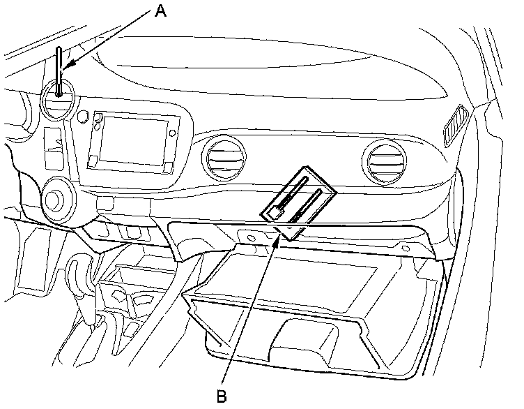 4. Open the glove box. While holding the glove box, release the glove box stops on each side from the dashboard by pushing them in, then lower the glove box.
