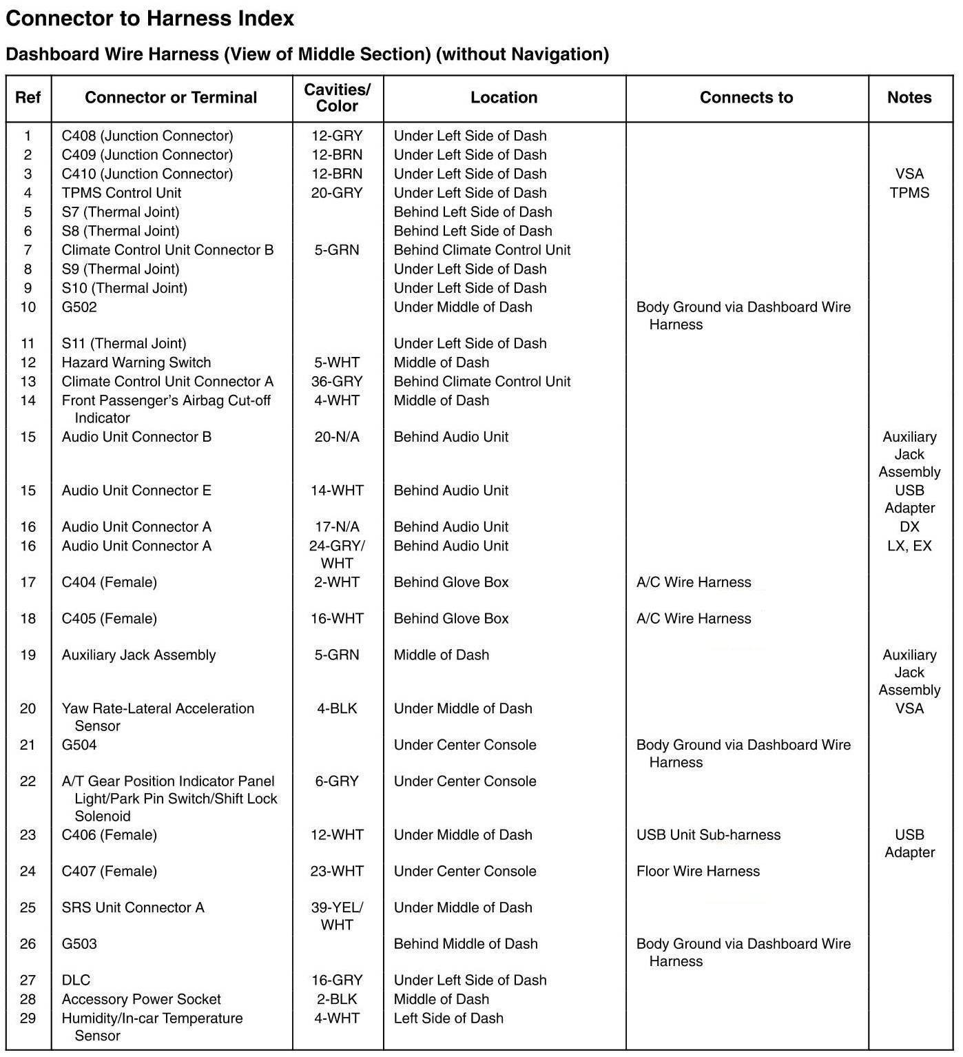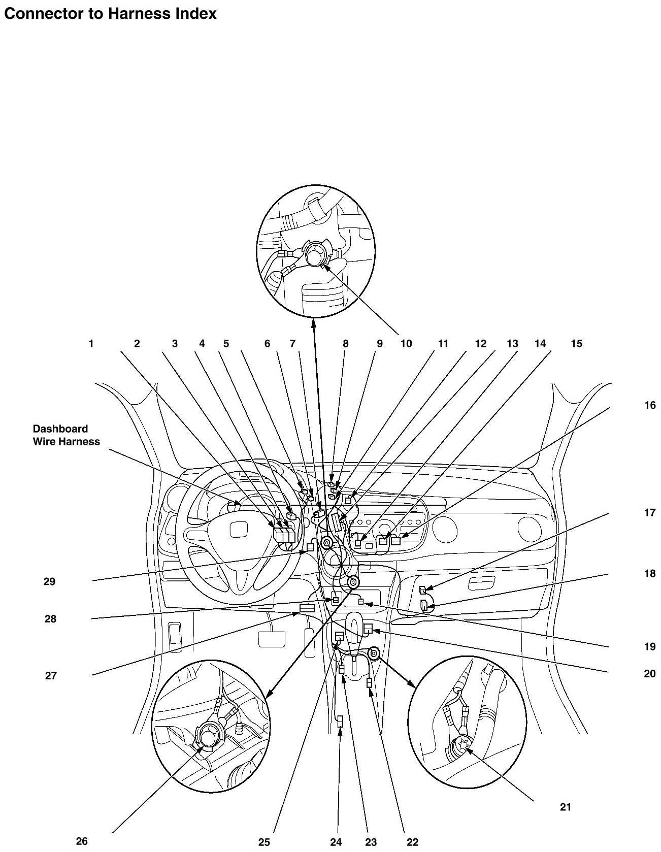 Dashboard Wire Harness (View Of Middle Section) Connector And Harness Locations (Without Navigation)