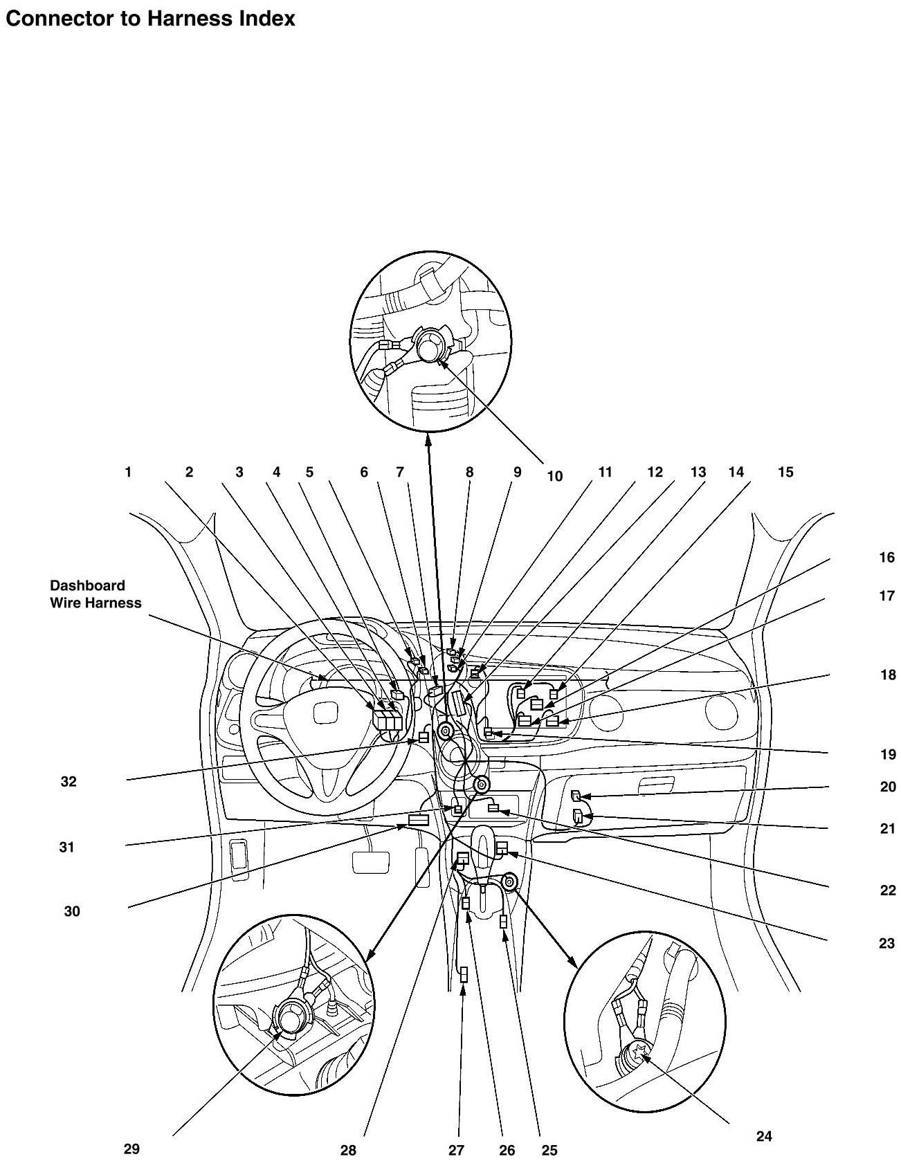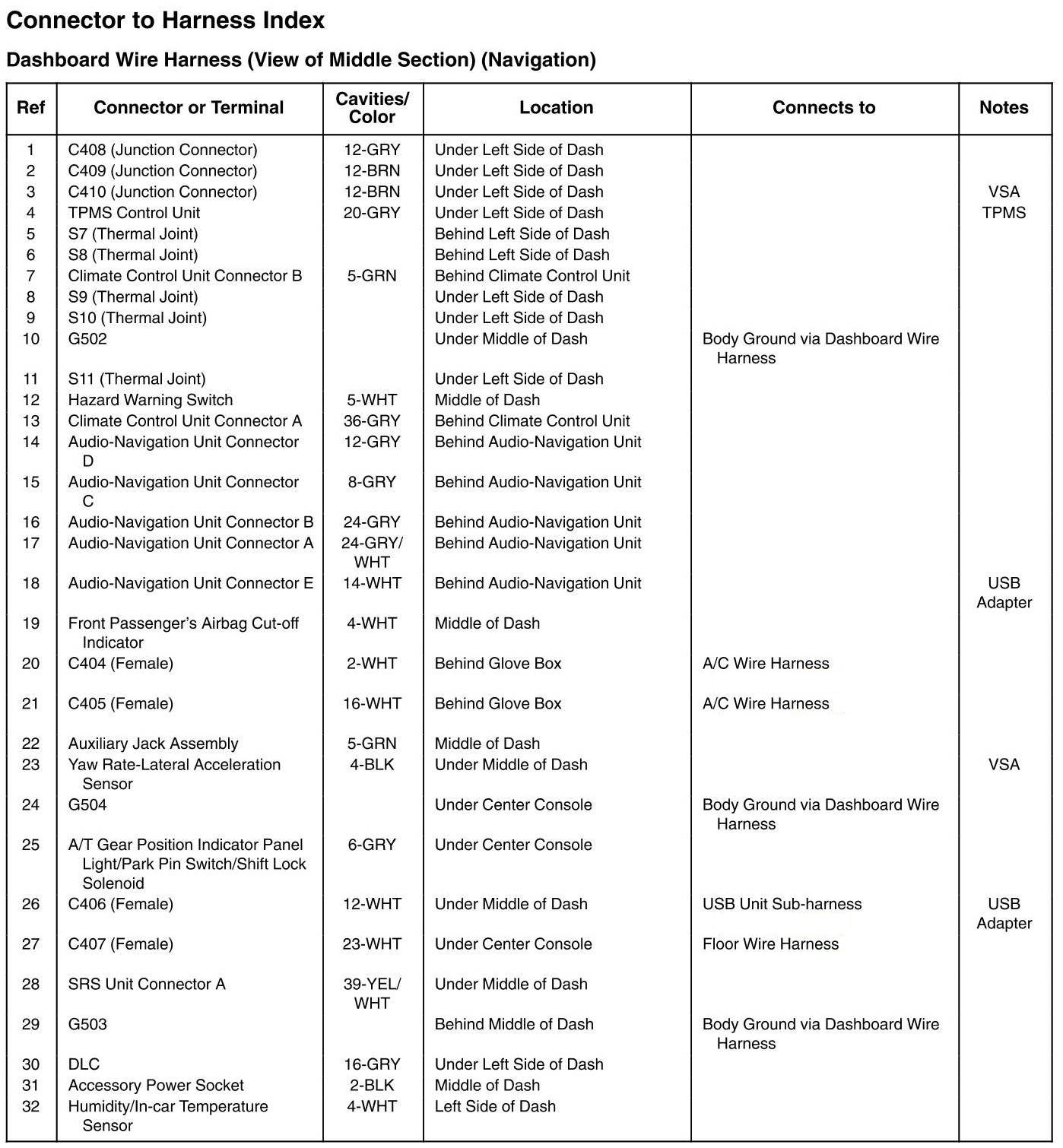 Dashboard Wire Harness (View Of Middle Section) Connector and Harness Locations (Navigation)