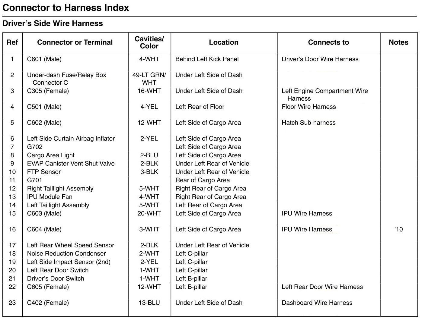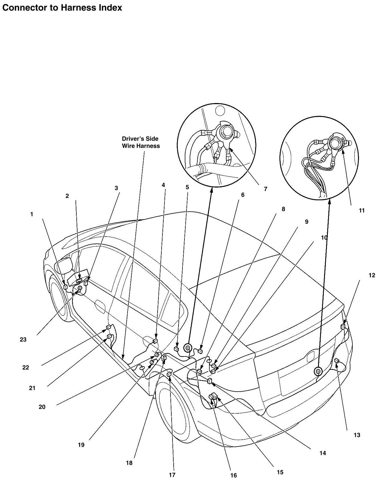 Driver's Side Wire Harness Connector And Harness Locations