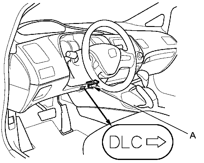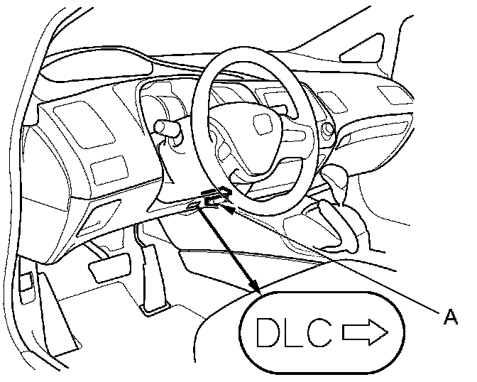 1. With the ignition switch in LOCK (0), connect the HDS (Honda Diagnostic System) to the data link connector (DLC) (A) located under the driver's side of the dashboard.