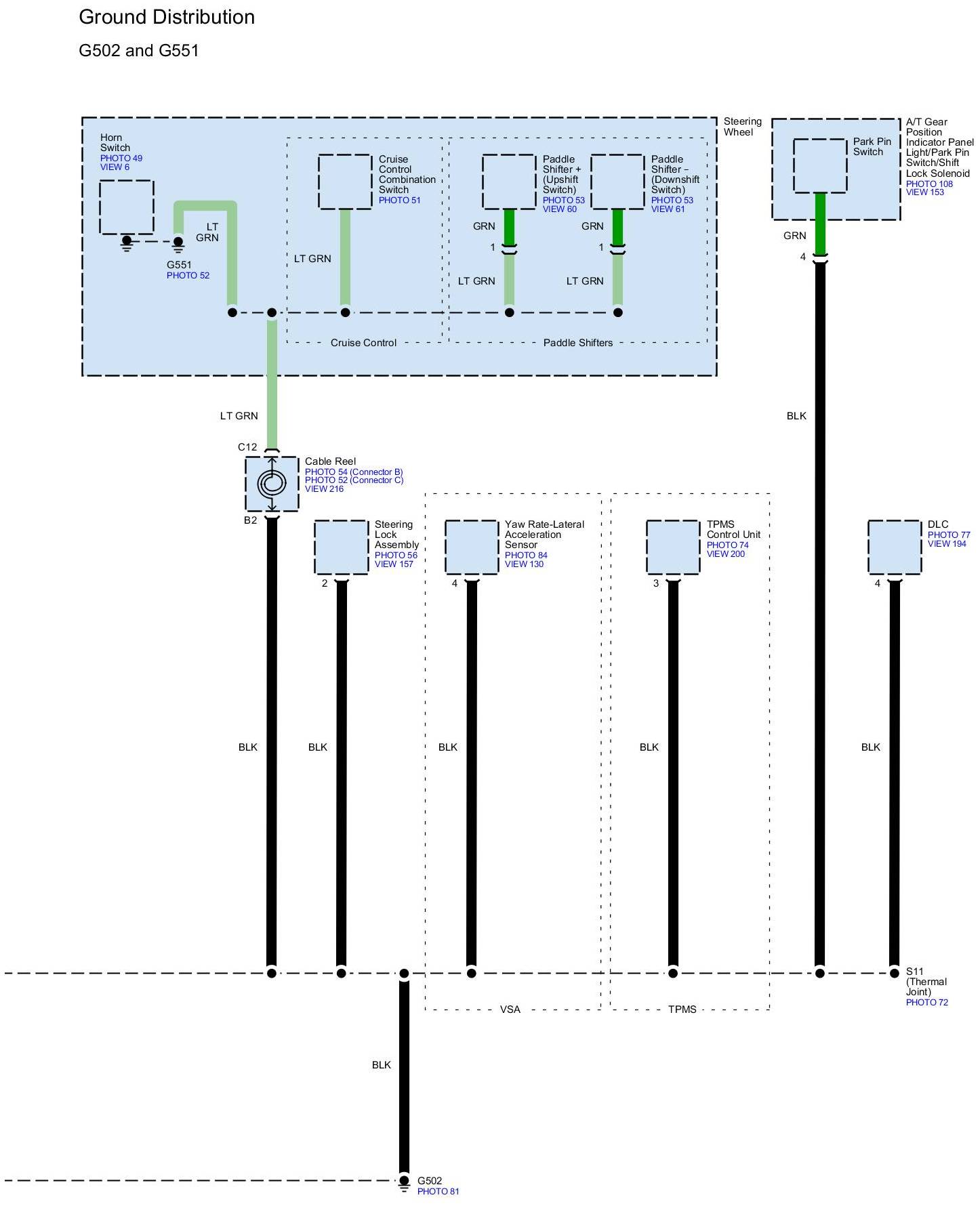 Locations: Location photographs (references to PHOTOS) referred to within these diagrams can be found at Locations by Photo Number. Component Locations