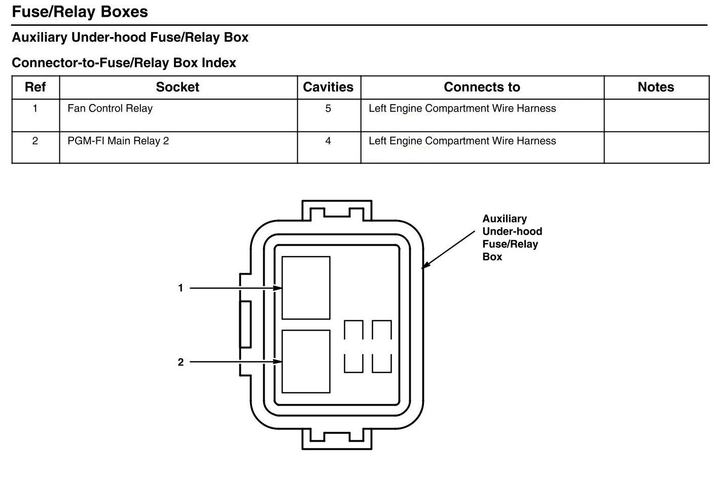Auxiliary Under-Hood Relay Box - Connector-To-Relay Box Index