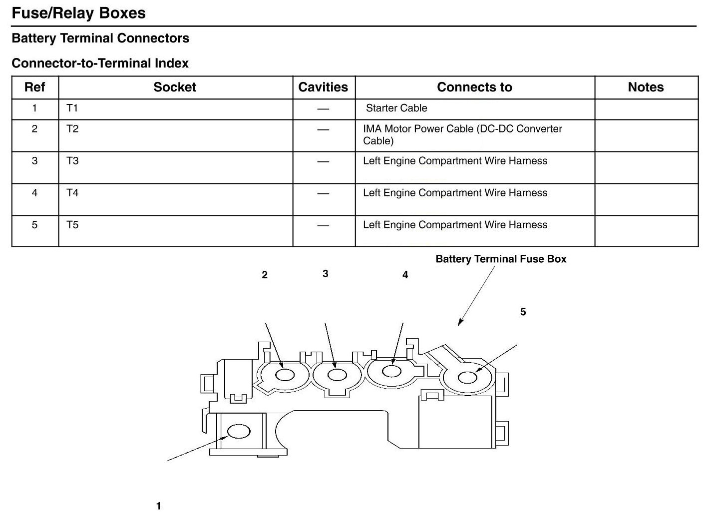 Battery Terminal Fuse Box - Connector-to-Components Index
