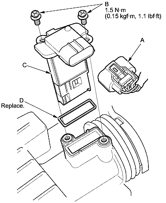 4. Install the parts in the reverse order of removal with a new gasket (D).
