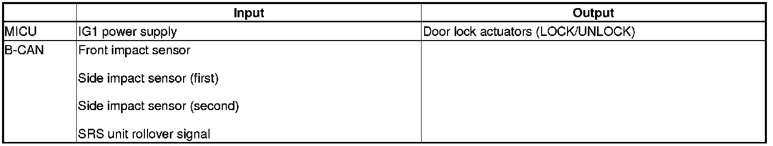 The MICU control of the door lock actuators is based on inputs from each switch and B-CAN data.